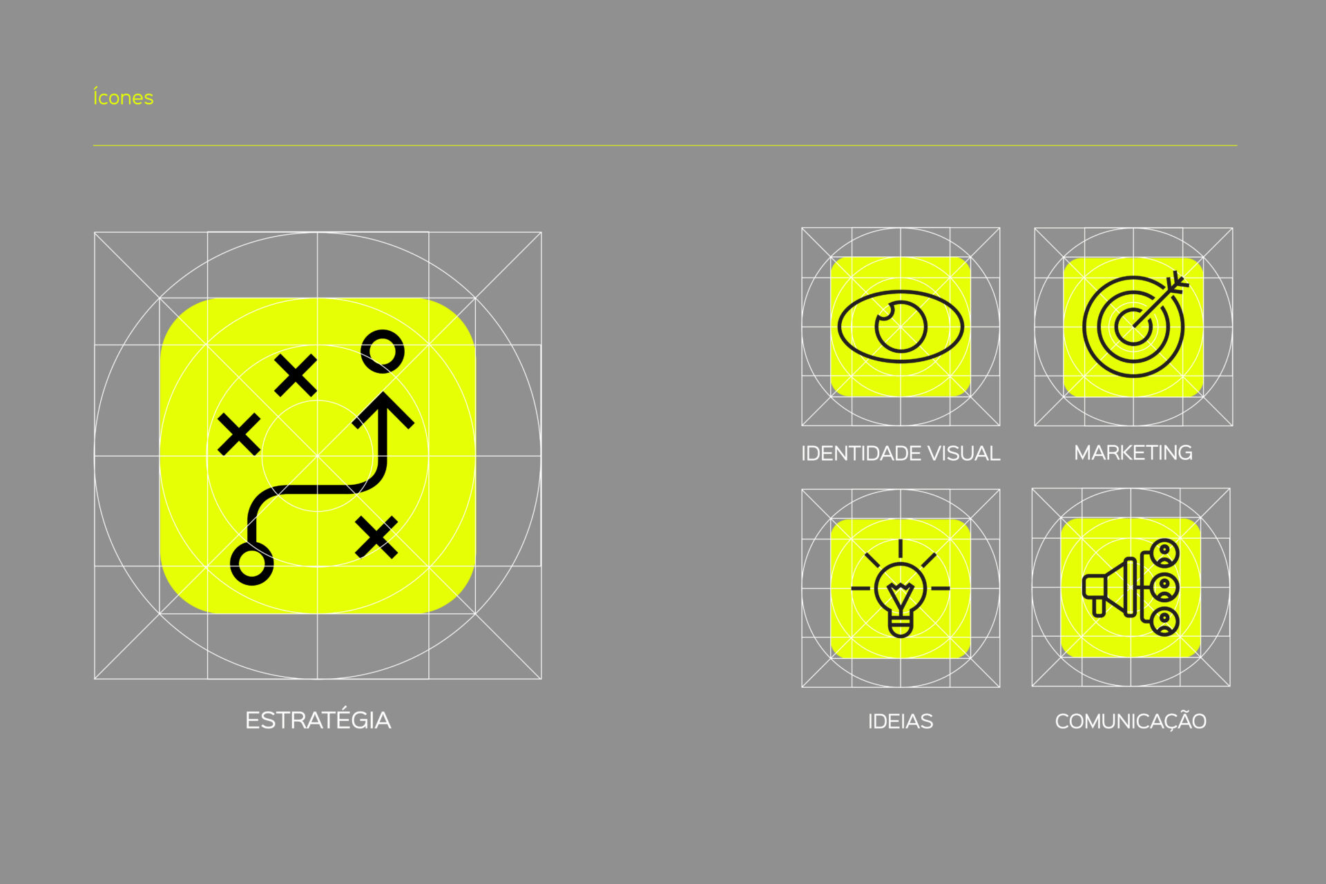 Um elemento forte das marcas em meu portfólio é o minimalismo, por isso seguiu-se esse estilo no desenvolvimento da identidade visual. Para representar algumas características do meu trabalho escolhi o raio como símbolo. Esse elemento esta relacionado ao processo de brainstorming que faz parte da da criação, o raio também representa impacto e é fonte de iluminação.